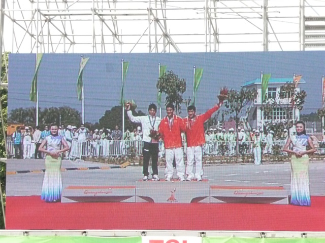 表彰台の上でも、彼の表情に複雑な心境が見て取れる。